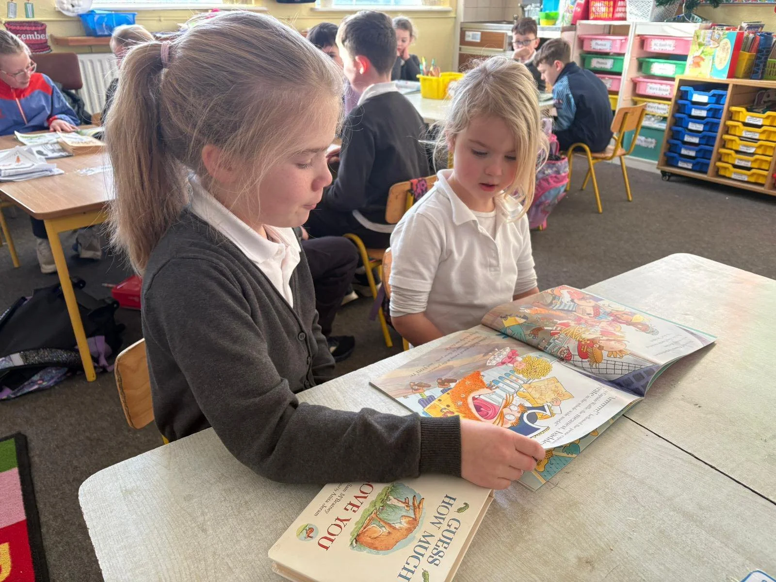 This year, we ran our shared reading day where each child brought in their favourite book to share with a friend from another class. 5th and 6th worked with 1st and 2nd and 3rd and 4th worked with Junior and Senior Infants. The children really enjoyed chatting to each other and the older children loved reading to the younger ones. There were some great book recommendations going back and forth and the children got to know each other a little better.